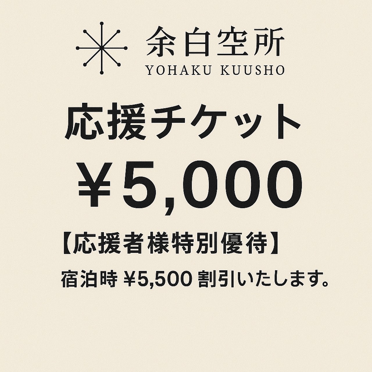 本チケットは、宿泊複合施設「余白空所(YOHAKU KUUSHO)」のオープン準備を応援してくださる方向けの期間限定プランです。