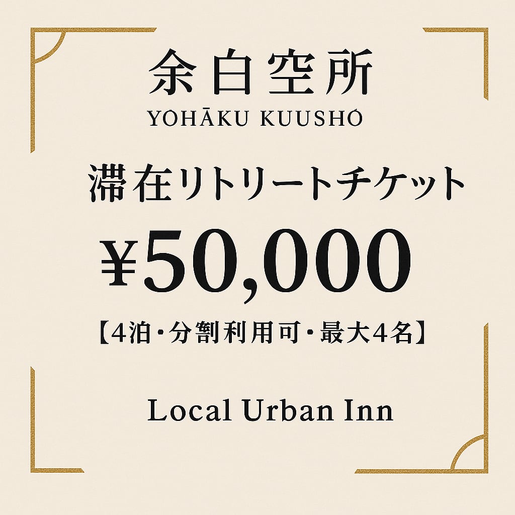 余白空所|滞在リトリートチケット ¥50,000(4泊・分割利用可・最大4名・ギフト対応)
